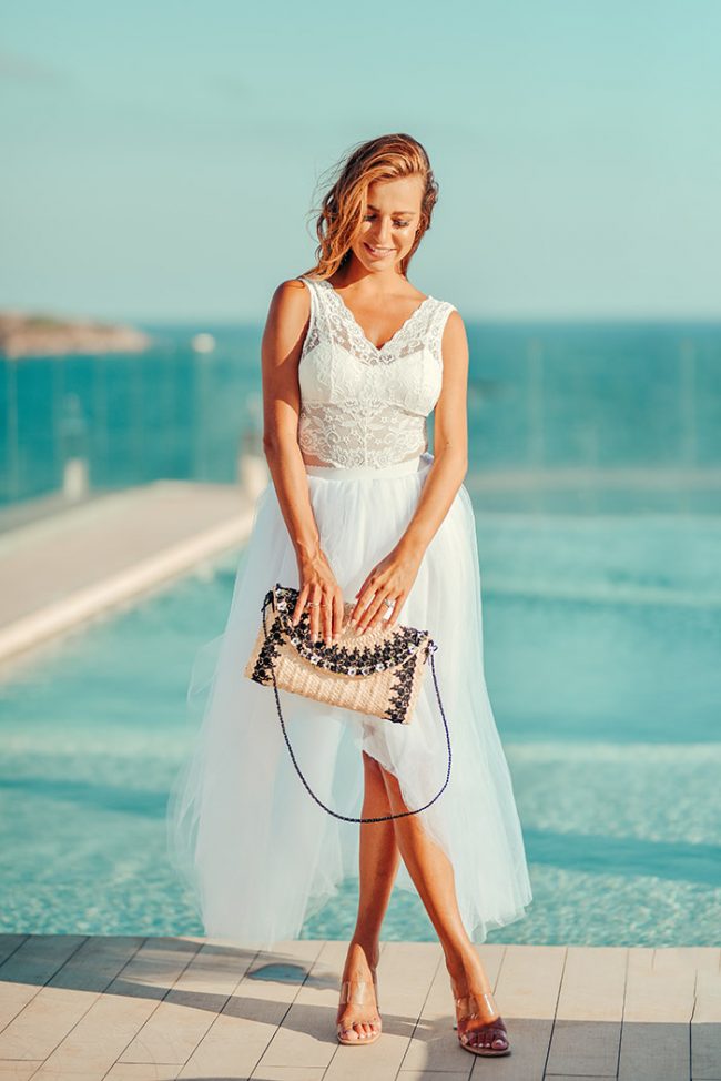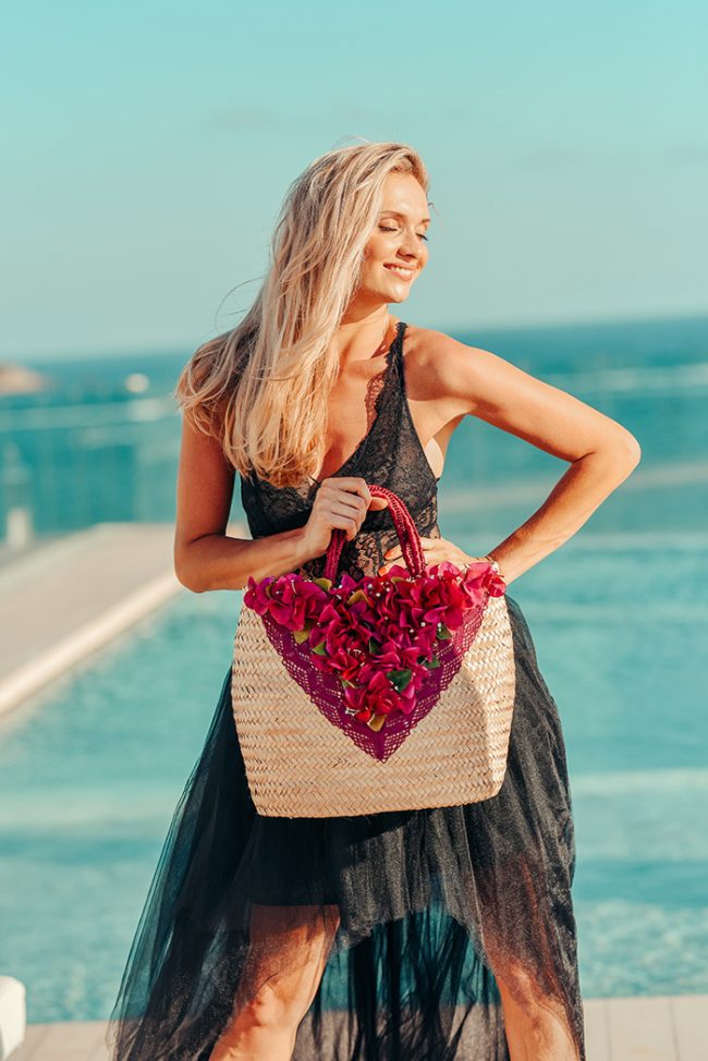 Fashion Shoot Adlib Ibiza 2020 en Hotel Me Ibiza, bolso de la diseñadora Dolors Miro